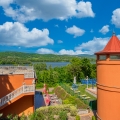 E fantasztikus panorámát tapasztalhatják meg kedves Vendégeink 75 db légkondicionált, telefonnal, színes LCD televízióval és internet hozzáféréssel ellátott szobánk egy részéből, a 160 férőhelyes svédasztalos és a’ la carte kínálatú Tiffany éttermünkből és Panoráma teraszunkról, valamint a wellness-fitness épületszárny tetején elhelyezkedő napozó teraszunkról.